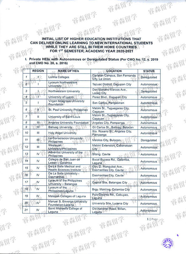菲律宾高教委批准部分大学网课文件.jpe...